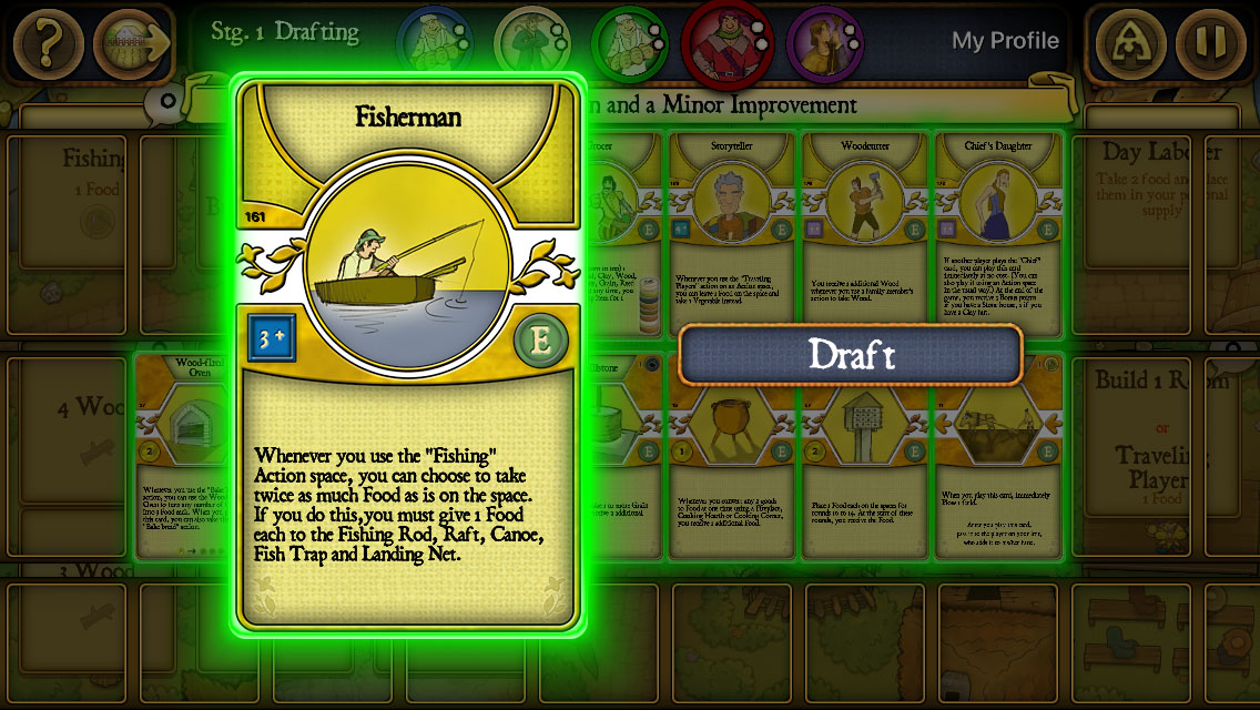 各プレイヤーが職業・小進歩をそれぞれ順に1枚ずつ選んでいく形式です。