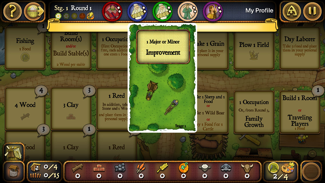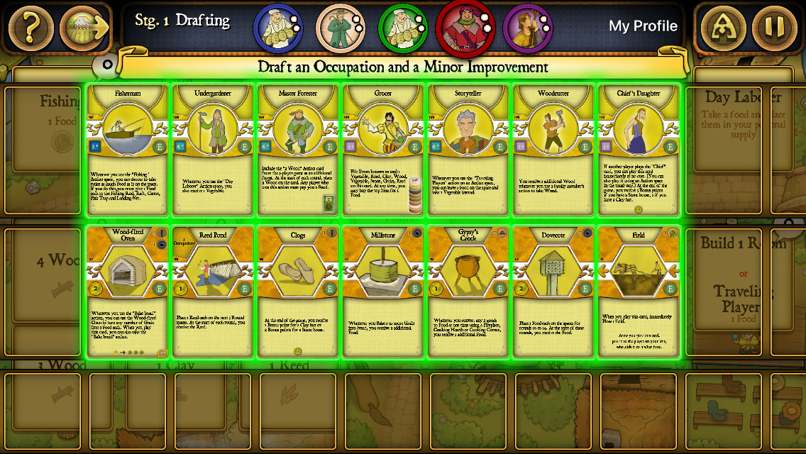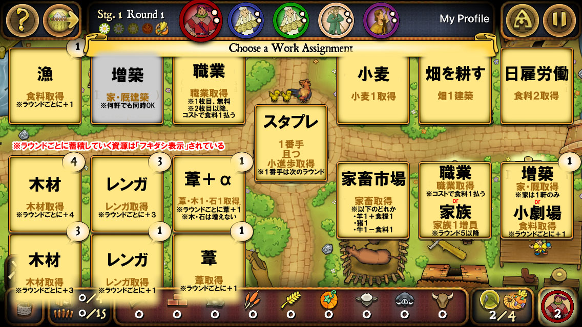 各プレイヤーが職業・小進歩をそれぞれ順に1枚ずつ選んでいく形式です。